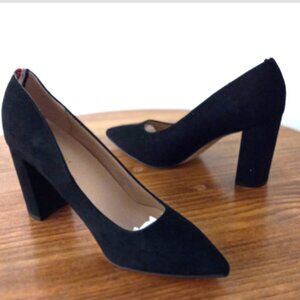 Tommy Hilfiger Abilene pumps, black suede heels, women’s dress shoes, size 7.5 heels, classic black pumps, designer suede shoes, office heels