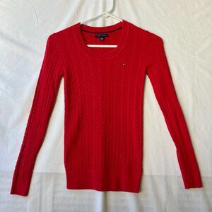 Tommy Hilfiger Apple Red Cotton Sweater Womens Size XXS Cable Knit Flag Preppy