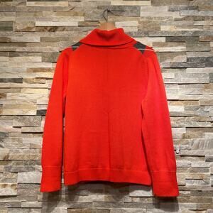 Turn heads with this vibrant orange Tommy Hilfiger cardigan — a bold take on classic preppy style. Featuring a sharp black and gray argyle knit and signature gold crest buttons, this sweater blends heritage charm with standout color. The shawl collar and buttoned patch pockets add structure and cozy sophistication, making it a true statement layer.