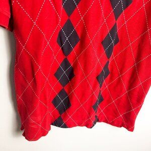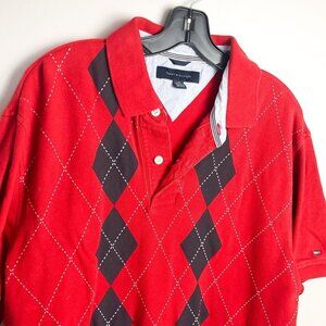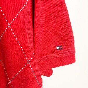 Tommy Hilfiger Argyle Print Red Cotton Polo Shrit Large