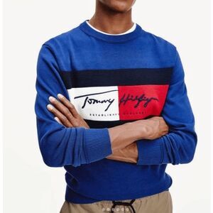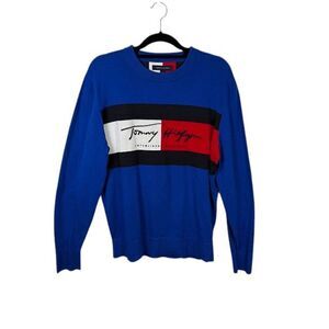 Tommy Hilfiger Autograph Flag Crew Neck Sweater Blue Red Men's Size Large