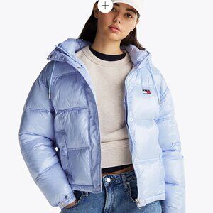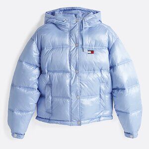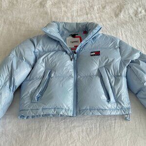 Tommy Hilfiger Baby Blue Glossy Cropped Puffer Jacket