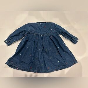 Tommy Hilfiger Baby Dress Denim Jean 18-24 Month Button Up Embroidered Floral