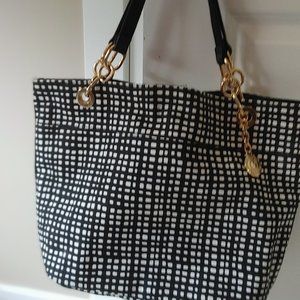 Black and White Tote with signature Tommy Hilfiger Gold Chain,