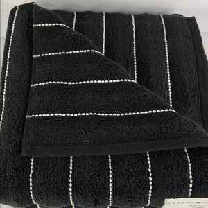Tommy Hilfiger Bath Towels Set of 2 Park Stripe Black White Plush Cotton NEW