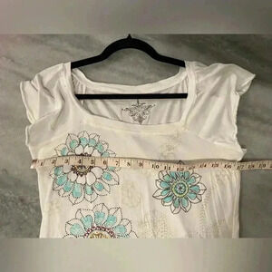 Tommy Hilfiger Beaded Boatneck Cap Sleeve Floral Mandala Graphic Tee Size Small