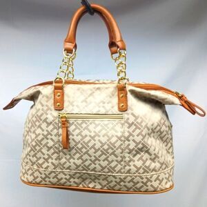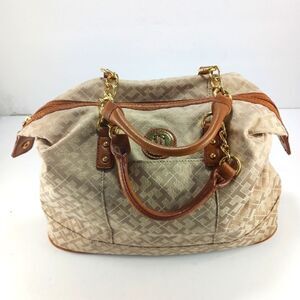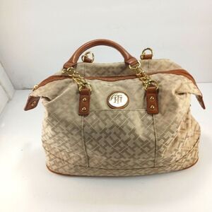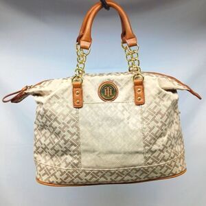 Tommy Hilfiger Beige Signature Logo Handbag Purse Satchel Top Canvas Exterior...