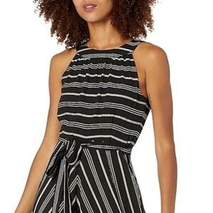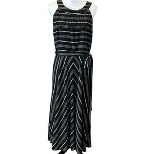 Tommy Hilfiger Belted Halter Midi Dress Black Gray Stripe Crinkle Gauze 12 NWOT
