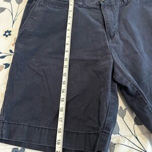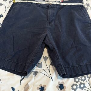 Tommy Hilfiger Bermuda/ Chino Shorts Men's 38 Navy Blue. Slash Pocket. Good used condition. A slight discoloration on the right leg. Noted in the photos. Normal wear and some fade. No rips, stains or defects. Please see pictures for measurements.