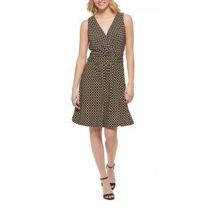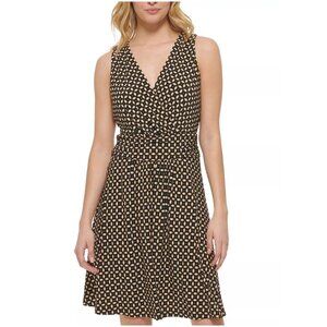 Tommy Hilfiger Black Beige Geometric Print Dress Size 14 Summer Office Career