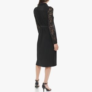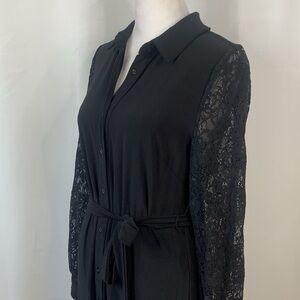 Tommy Hilfiger Black Button Down Long Lace Sleeve Midi Dress- NWT- Size 4