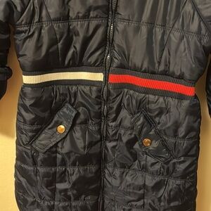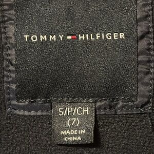 Elegant black coat featuring the iconic Tommy Hilfiger logo. Perfect for stylish outings.