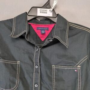 Tommy Hilfiger Black Contrast Stitching Button Up Shirt Women's L