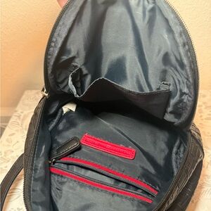 Stylish black embossed backpack with gold accents. Perfect for everyday use.