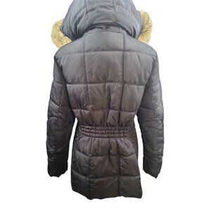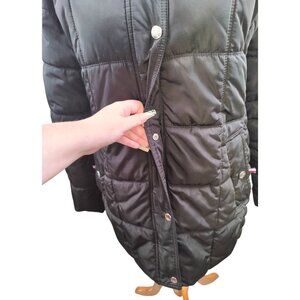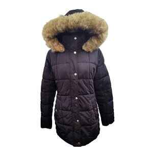 Tommy Hilfiger Black Faux Fur Quilted Puffer Jacket Coat Parka With Hood Size M