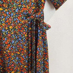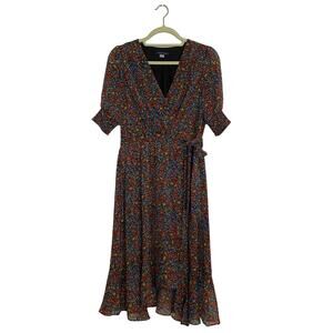 Tommy Hilfiger Black Floral Faux Wrap Midi Dress Sz 4