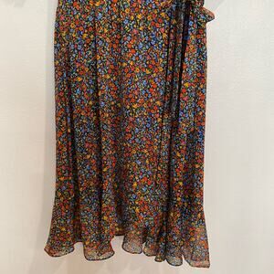 Size 4 black floral midi faux wrap dress by Tommy Hilfiger in excellent preowned condition.