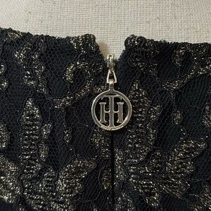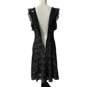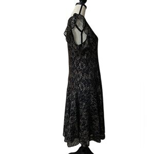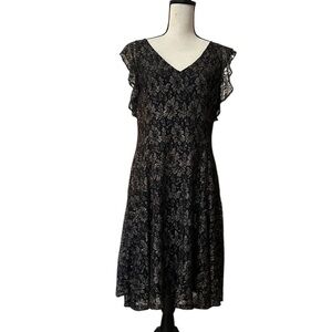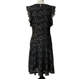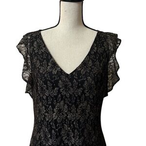 Tommy Hilfiger Black Gold Floral Mesh Lace Dress Flutter Sleeve Dress Sz. 12