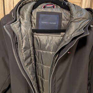 Tommy Hilfiger Black Hooded Double Zipper Coat Size Small