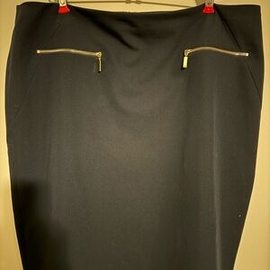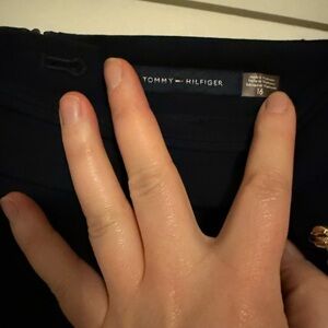 This black pencil skirt by Tommy Hilfiger is designed for a professional setting, featuring a knee-length cut and a sleek, tailored fit. Its structured fabric ensures a polished appearance, making it an ideal choice for work or cocktail events.
