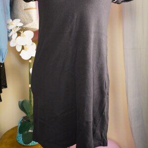 Tommy Hilfiger Black Knit Polo Dress White Trim M Summer Beachy Country Club