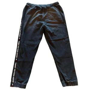 Tommy Hilfiger Black Pull On Drawstring Closure Cotton High Rise Denim Skinny Logo Jeans Pants SZ XL #1503