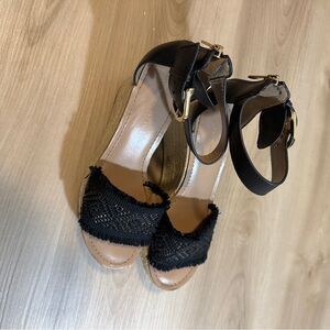 Tommy Hilfiger Black Raffia Fringe Terrin Open Toe Espadrille Sandals Size 7.5