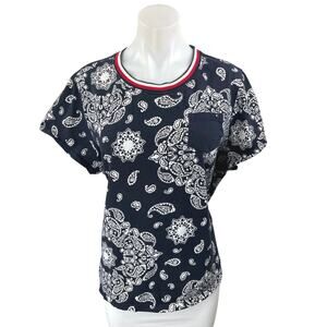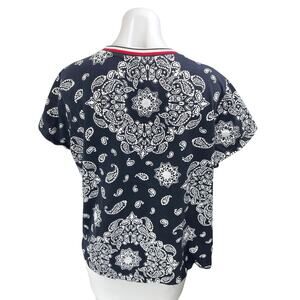 Tommy Hilfiger Black Red Paisley Print Loose Fit Pocket T Shirt Tee Top Size XL