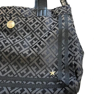 Tommy Hilfiger Black Signature Logo Canvas Shoulder Bag