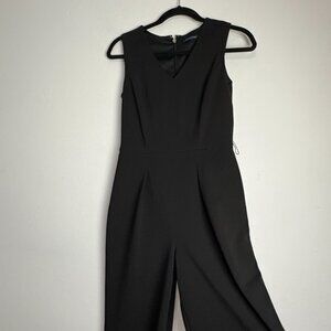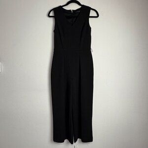Tommy Hilfiger Black Sleeveless Jumpsuit Sz Small V-Neck Lined Wide Leg Cropped