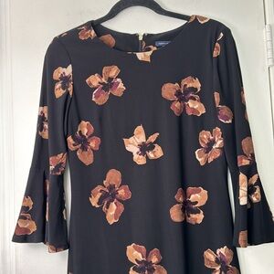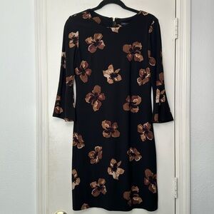 Tommy Hilfiger Black & Tan Floral Long Bell Sleeve Jersey Shift Dress Size 4