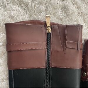 Tommy Hilfiger Black Tan Full Zip Riding Boots Size 6.5