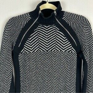 Tommy Hilfiger Black White Chevron Zipper Mock Turtleneck Sweater M