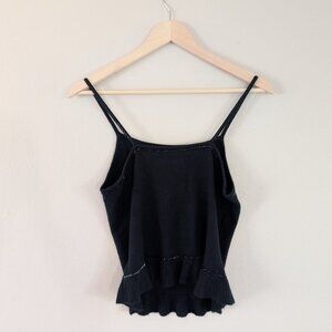 Tommy Hilfiger Black Y2K Spaghetti Strap Knit Top Beaded with Ruffles Size SP