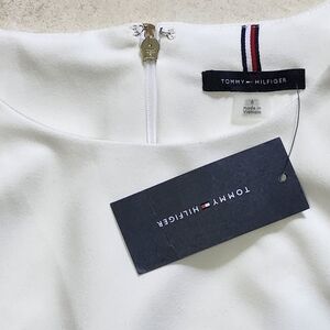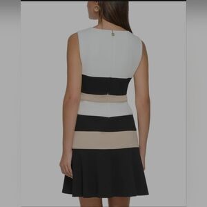 This stunning Tommy Hilfiger dress showcases a sophisticated design in a striking black and cream color palette. Perfect for cocktail events or a night out, it features a flattering fit and flare silhouette that enhances your shape. The bold horizontal stripes add a modern touch, while the structured fabric ensures a polished look.