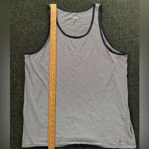 This stylish blue and white striped sleeveless tee is made with soft fabric is ideal for everyday wear. Made by Tommy Hilfiger. It looks to barely be used and is a size XL. More measurements are in the pictures.