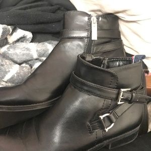 These classy TH boots haven’t even been worn once, They are a size 9m but would more appropriately fit a size 9F or 8.