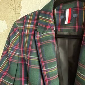 Tommy Hilfiger Blazer Womens 10 Green Plaid Single Button Holiday Office Party