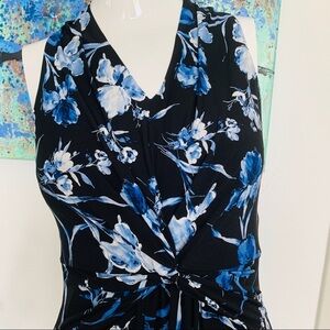 Cool blue florals make a striking statement on this forever-flattering fit & flare dress by Tommy Hilfiger. It comes complete with a waist-cinching tie.