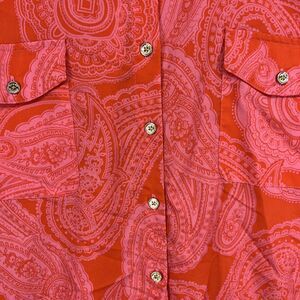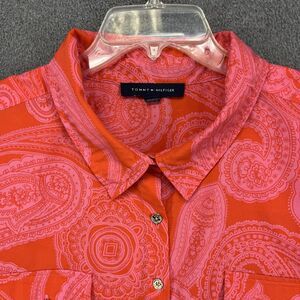 Tommy Hilfiger Blouse Womens 2X Plus Orange Paisley Button Front Long Sleeve