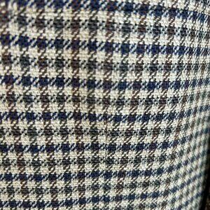 Men’s blue brown houndstooth plaid 3 button sport coat, blazer