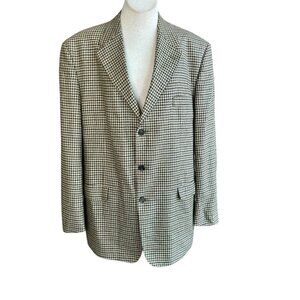 Tommy Hilfiger Blue Brown Houndstooth Plaid 3 Button Sport Coat Blazer Size 44L