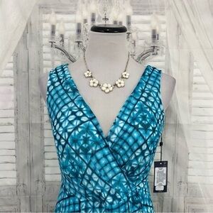Tommy Hilfiger Blue Chiffon V Neck Maxi Dress High Low Sleeveless Faux Wrap NWT