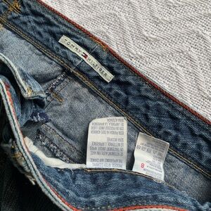 Tommy Hilfiger Blue Denim Mini Skirt Womens Size 8 Zip Fly Y2K Design Classic