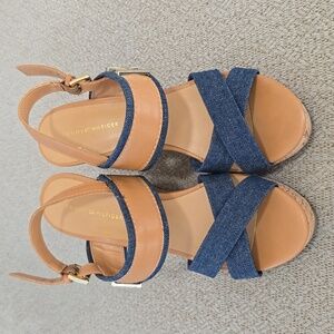 Tommy Hilfiger Blue Denim Wedge Sandals - Size 7.5