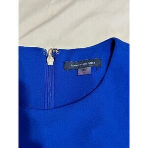 Tommy Hilfiger blue dress with waist-belt that ties and has silver endpieces! It is a fit-and-flare type style and falls right at or above the knee. Perfect for work or conferences and it is a beautiful vibrant color! In great condition bue has one area on the belt where the thread has picked (see photos). Size 2.
