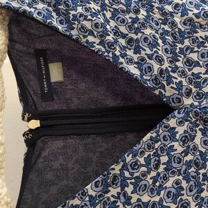 Charming blue maxi dress with floral pattern. Features ruffled sleeves and tiered skirt. Ideal for casual outings. slight hi low hemline. built in lining.