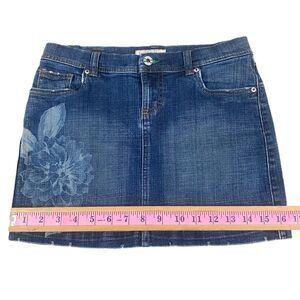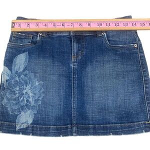 Tommy Jeans Medium Wash with White Floral Print Mini Jean Skirt Size 3