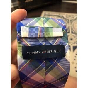Tommy Hilfiger Blue, Green, Yellow, White, & Red Plaid Check 100% Silk Necktie