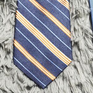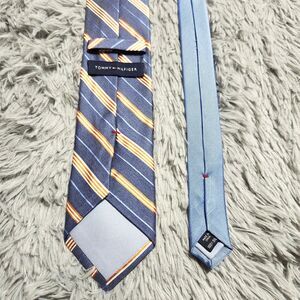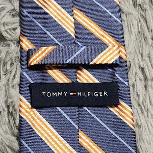 Tommy Hilfiger Blue Orange Mens 100% Silk Tie Diagonal Striped Necktie Designer